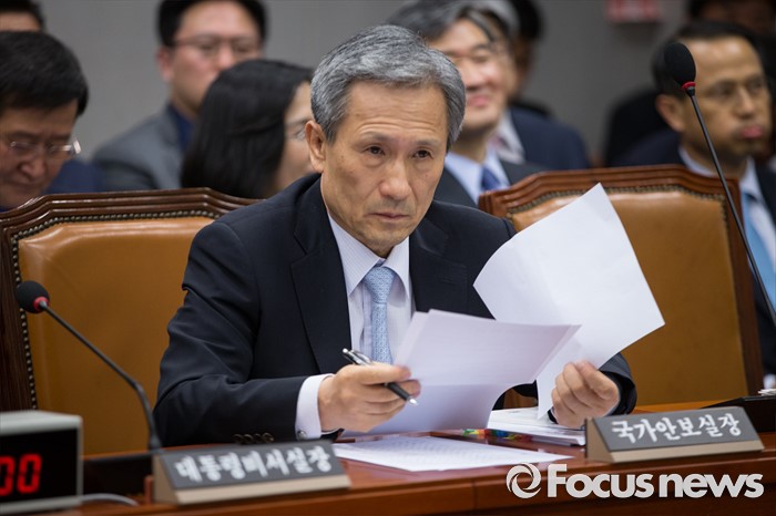 (서울=포커스뉴스) 김관진 국가안보실장이 1일 오후 국회에서 열린 운영위원회 전체회의에 참석해 준비한 자료를 보고 있다.