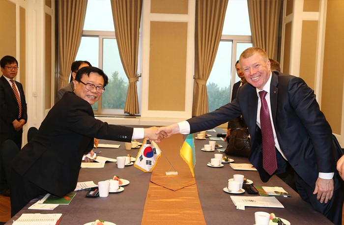 (서울=포커스뉴스) 이동필 농림축산식품부 장관이 1일 서울 여의도 국회의사당에서 세르기 라린 '한 - 우크라이나 의원친선협회' 회장을 만나 양국간 농업협력 현안에 대해 면담하고 있다. <사진제공=농림축산식품부>