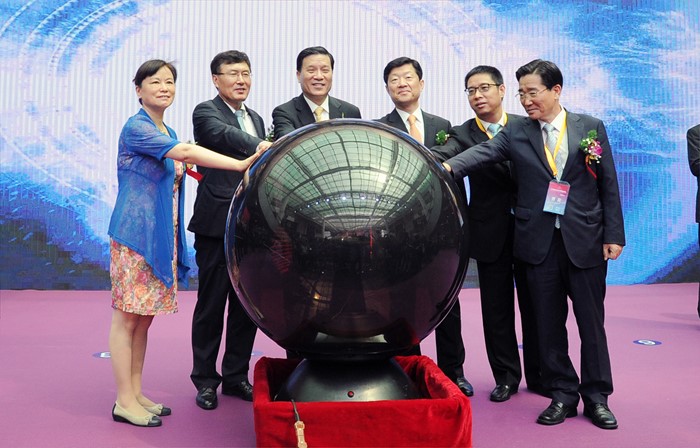 (서울=포커스뉴스) 우태희 산업통상자원부 2차관이 1일 중국 산동성 지난 국제컨벤션센터에서 샤겅(夏耕) 산동성 부성장, 정광영 KOTRA 부사장, 양웨이췬(杨伟群) 상무부아주사 부사장, 정진학 부산시 산업통상국장, 량롱(梁蓉) 중국상업연합회 부회장을 비롯한 한중 양국 정부 및 관계자들이 참석한 가운데 열린 '제남 한국상품전시회' 개막식에 참석해 퍼포먼스를 하고 있다. <사진제공=산업통상자원부>