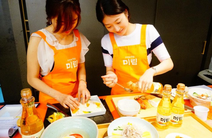 롯데주류가 1일 서울시 중구 태평로에 위치한 라퀴진에서 정미경 요리연구가와 함께 요리전용 맛술 '미림'을 사용해 여름철 보양식을 직접 만드는 '효과빠른 미림 쿠킹클래스'를 진행했다.