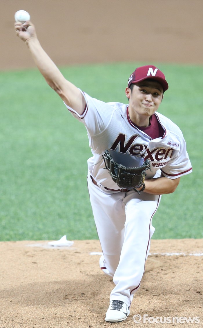 (서울=포커스뉴스) 1일 서울 고척 스카이돔에서 열린 2016 프로야구 KIA-넥센 경기에서 넥센 선발투수 최원태가 투구하고 있다.