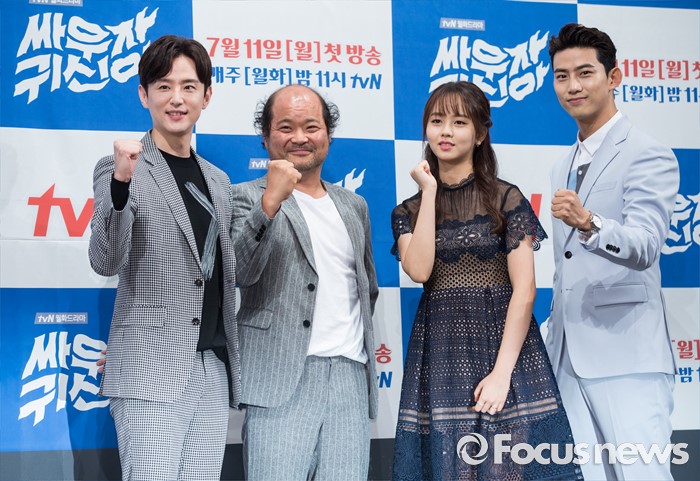 '싸우자 귀신아'가 '또 오해영'의 흥행세를 이어받아 다시 한 번 tvN 드라마의 자존심을 세울 수 있을지에 귀추가 주목된다. '싸우자 귀신아'는 7월11일 오후 11시 첫방송된다.(서울=포커스뉴스) 1일 오후 서울 강남구 임피리얼 팰리스호텔에서 열린 tvN 월화드라마 '싸우자 귀신아' 제작발표회에 참석한 배우 권율(왼쪽부터), 김상호, 김소현, 옥택연이 포토타임을 갖고 있다. 2016.07.01 김유근 기자 (서울=포커스뉴스) 1일 오후 서울 강남구 임피리얼 팰리스호텔에서 열린 tvN 월화드라마 '싸우자 귀신아' 제작발표회에 참석한 박준화 감독이 인사말을 하고 있다. 2016.07.01 김유근 기자 (서울=포커스뉴스) 1일 오후 서울 강남구 임피리얼 팰리스호텔에서 열린 tvN 월화드라마 '싸우자 귀신아' 제작발표회에 참석한 배우 옥택연(왼쪽)과 김소현이 포토타임을 갖고 있다. 2016.07.01 김유근 기자