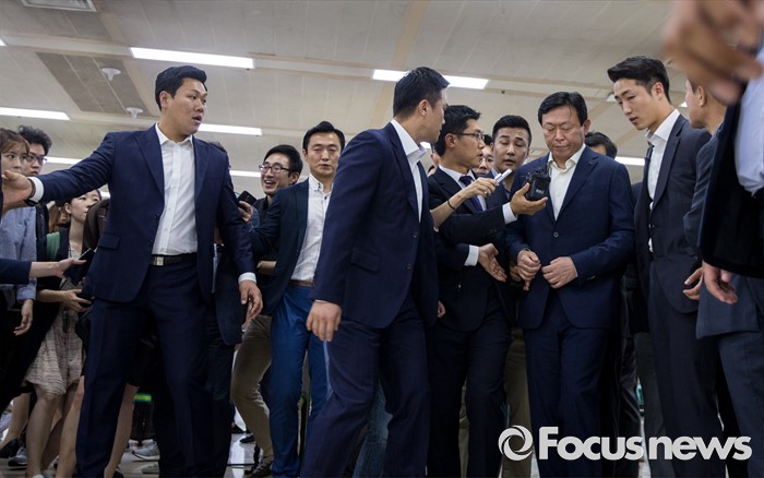 (서울=포커스뉴스) 신동빈 롯데그룹 회장이 3일 오후 서울김포공항을 통해 귀국, 취재진의 질문에 답하고 있다. 신 회장은 이날 기자들에게 최근 롯데그룹을 둘러싼 일련의 사태에 대해 "죄송하다"고 공식 사과 했다.