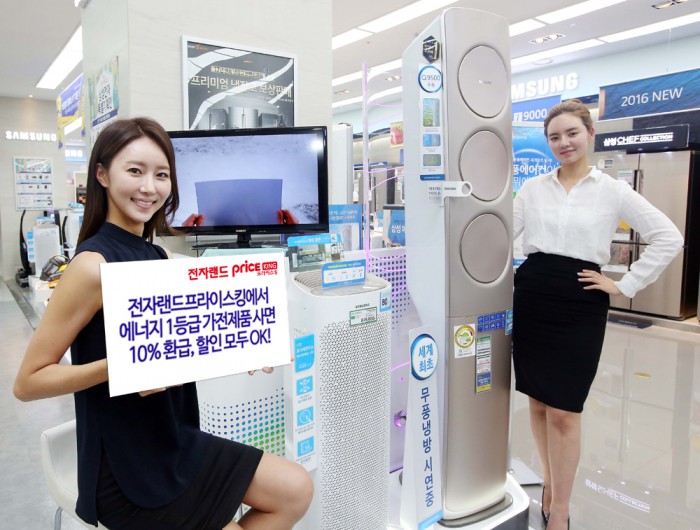 전자랜드 관계자는 "올해 가전제품을 구매하기 가장 좋은 시기가 지금이라고 해도 과언이 아니다"며 "올해 냉방가전을 아직 준비하지 못했거나 그동안 생각만 했던 제품을 아직 구입하지 못한 고객들에게는 최고의 구매기회가 될 것"이라고 말했다.전자랜드는 오는 9월30일까지 에너지소비효율 1등급 제품 구매하면 품목·개인별 20만원 한도 내에서 구매 가격의 10%를 환급한다고 밝혔다.<사진제공=전자랜드>