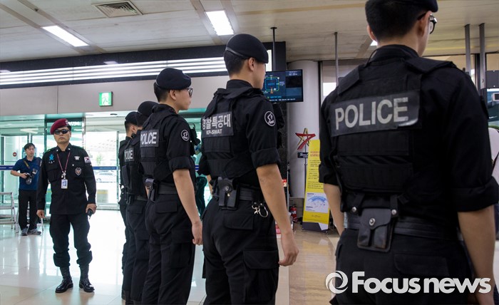 (서울=포커스뉴스) 3일 오후 서울김포공항 출국장에 신동빈 롯데그룹 회장의 귀국을 앞두고 경찰특공대 병력들이 대기하고 있다. 신 회장은 이날 기자들에게 최근 롯데그룹을 둘러싼 일련의 사태에 대해 "죄송하다"고 공식 사과 했다.
