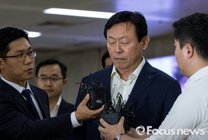 (서울=포커스뉴스) 신동빈 롯데그룹 회장이 3일 오후 서울김포공항을 통해 귀국, 취재진의 질문에 답하고 있다. 신 회장은 이날 기자들에게 최근 롯데그룹을 둘러싼 일련의 사태에 대해 "죄송하다"고 공식 사과 했다.