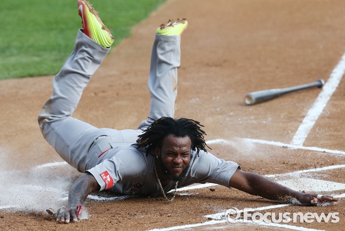 | △ 홈 슬라이딩하는 SK 고메즈 |