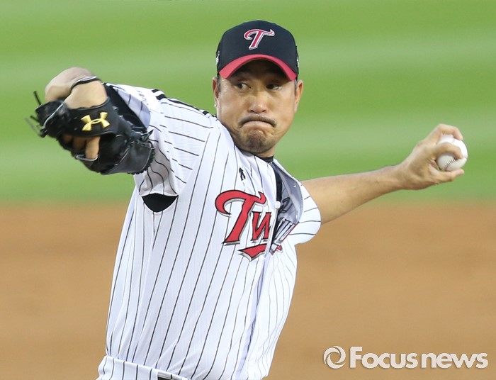 (서울=포커스뉴스) 3일 서울 잠실구장에서 열린 2016 프로야구 SK-LG 경기에서 LG 투수 봉중근이 5회초 선발 류제국을 구원 등판해 투구하고 있다.