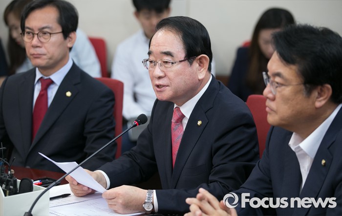 (서울=포커스뉴스) 4일 오전 서울 여의도 새누리당사에서 열린 혁신비상대책위원회의에 참석한 박명재 사무총장이 발언하고 있다.