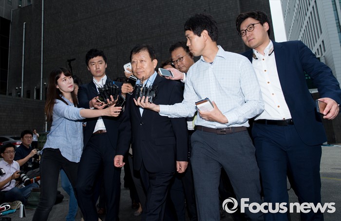 (서울=포커스뉴스) 5조 4천억 원대 회계사기로 대우조선해양 비리 의혹 핵심 인물로 지목된 고재호 전 사장이 4일 오전 서울중앙지방검찰청 부패범죄 특별수사단으로 출석하고 있다.