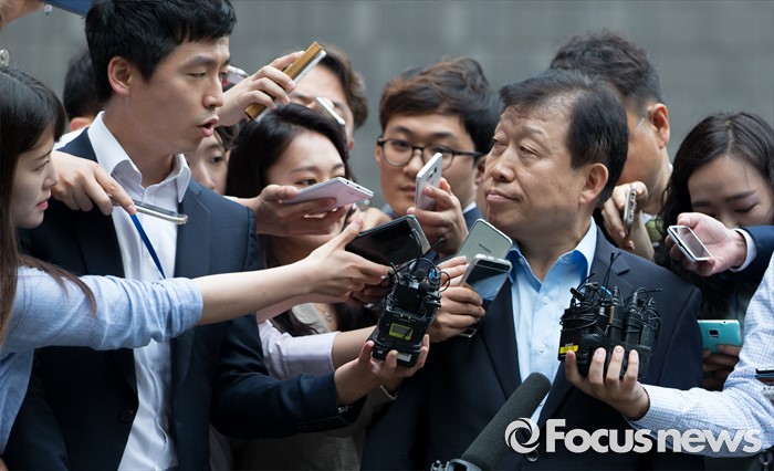 (서울=포커스뉴스) 5조 4천억 원대 회계사기로 대우조선해양 비리 의혹 핵심 인물로 지목된 고재호 전 사장이 4일 오전 서울중앙지방검찰청 부패범죄 특별수사단으로 출석하고 있다.