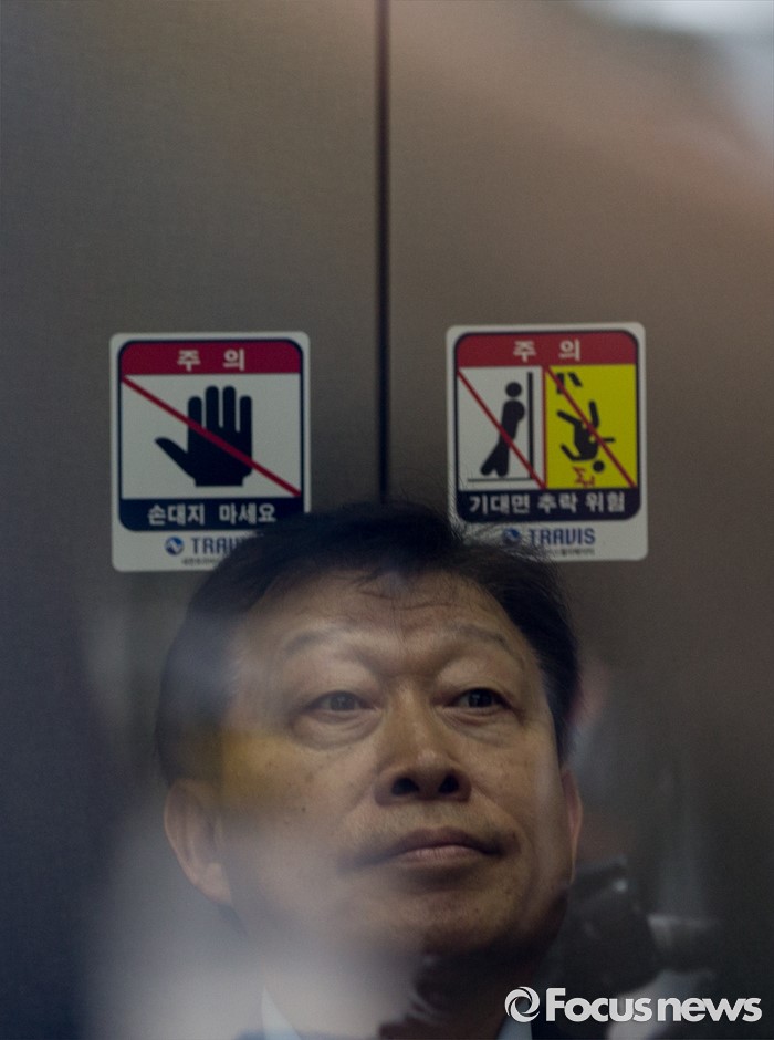 | △ 검찰 승강기 탑승한 고재호 전 사장 |