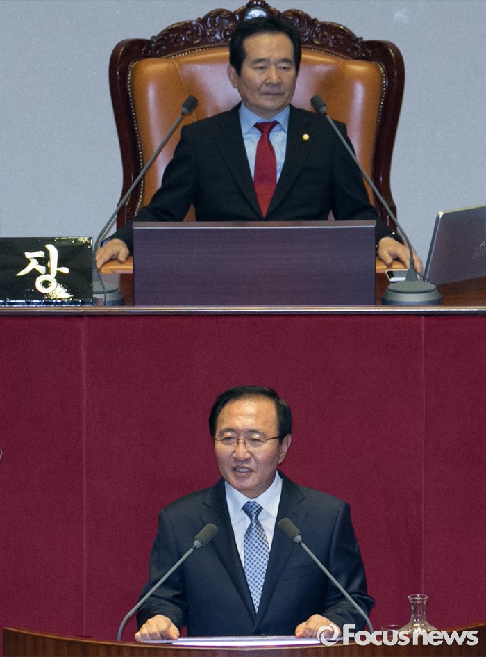 (서울=포커스뉴스) 4일 오전 서울 여의도 국회에서 열린 343회 국회(임시회) 6차 본회의, 경제에 관한 대정부 질문에 참석한 노회찬 정의당 원내대표가 비교섭단체 대표연설을 하고 있다.