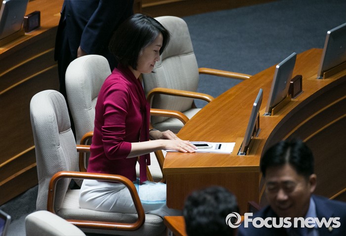 (서울=포커스뉴스) 4일 오전 서울 여의도 국회에서 열린 343회 국회(임시회) 6차 본회의, 경제에 관한 대정부 질문에 참석한 김수민 국민의당 의원이 자리하고 있다.