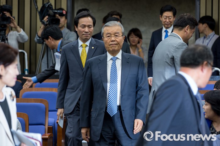 (서울=포커스뉴스) 김종인 더불어민주당 비상대책위 대표와 우상호 원내대표가 4일 오전 서울 여의도 국회에서 열린 의원총회에 참석하기 위해 회의실로 들어서고 있다.