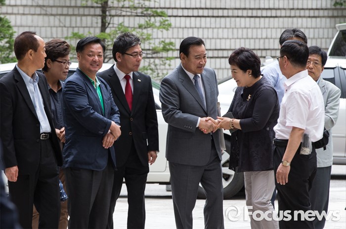 (서울=포커스뉴스) 정치자금법 위반 혐의를 받고 있는 '성완종 리스트'의 이완구(가운데) 전 국무총리가 항소심 4회 공판에 참석하기 위해 4일 오전 서울 서초구 서울고등법원으로 들어서고 있다.