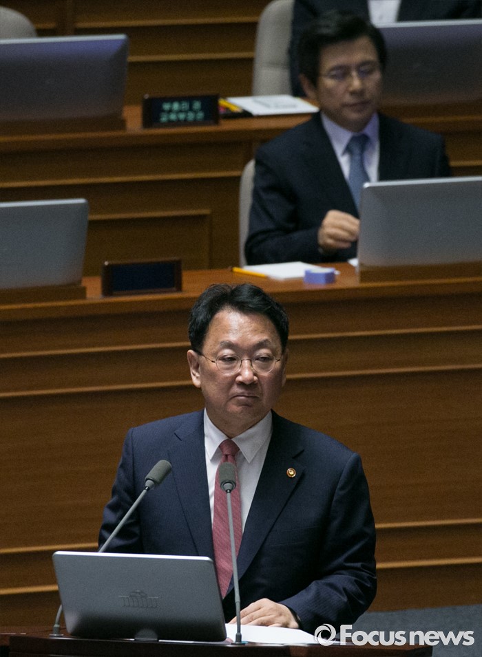(서울=포커스뉴스) 4일 오전 서울 여의도 국회에서 열린 343회 국회(임시회) 6차 본회의, 경제에 관한 대정부 질문에 참석한 유일호 경제부총리 겸 기획재정부 장관이 이종구 새누리당 의원의 질문에 답하고 있다.