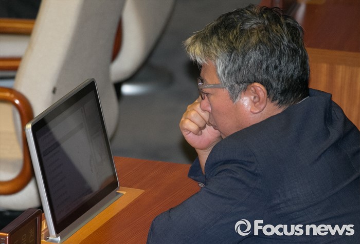 (서울=포커스뉴스) 4일 오전 서울 여의도 국회에서 열린 343회 국회(임시회) 6차 본회의, 경제에 관한 대정부 질문에 참석한 조응천 더불어민주당 의원이 생각에 잠겨 있다.
