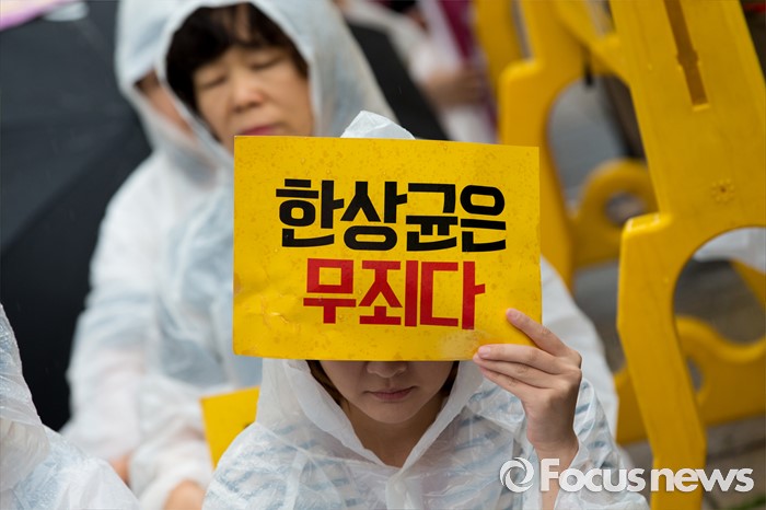 (서울=포커스뉴스) 4일 오후 서울중앙지방법원 앞에서 전국민주노동조합총연맹이 한상균 위원장 석방 판결 촉구 결의대회를 하고 있다.