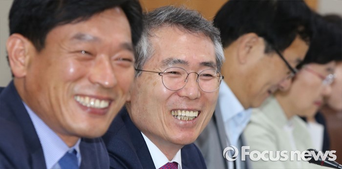 (세종=포커스뉴스) 4일 오후 세종시 정부세종청사 고용노동부 최저임금위원회 전원회의실에서 열린 제8차 전원회의에서 박준성 위원장이 회의에 앞서 환한 미소를 보이고 있다.