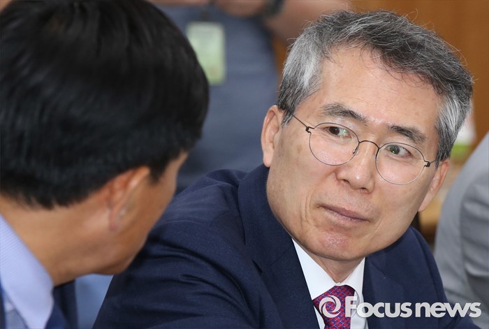 (세종=포커스뉴스) 4일 오후 세종시 정부세종청사 고용노동부 최저임금위원회 전원회의실에서 열린 제8차 전원회의에서 박준성 위원장이 류경희 부위원장과 대화하고 있다.