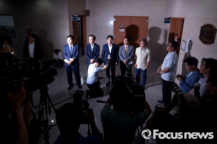 (서울=포커스뉴스) 경기지역 시장들이 4일 오후 서울 여의도 국회에서 행정자치부의 지방재정법 시행령 개정안 입법예고 철회를 촉구하는 기자회견을 마친 뒤 취재진 질문에 답하고 있다. 왼쪽부터 이재명 경기도 성남시장, 염태영 경기도 수원시장, 최성 경기도 고양시장, 채인석 경기도 화성시장.