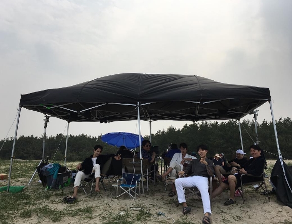 사진 속에는 배우 조인성과 정우성 등이 눈에 띈다. 정우성, 조인성, 류준열 등은 그늘막 속 의자에 앉아 자유로운 분위기로 휴식을 취하고 있는 모습이다. 특히 배경이 벌판으로 보여 '더킹'에 대한 궁금증을 높인다.