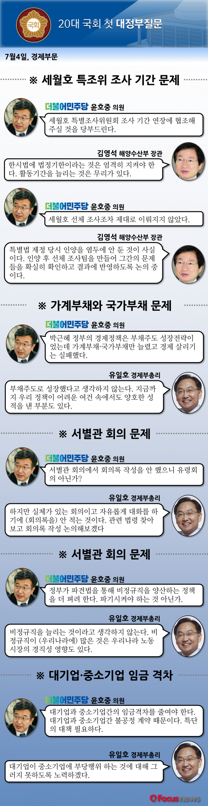 다음은 더불어민주당 윤호중 의원과 김영석 해수부 장관·유일호 경제부총리의 질의응답 내용이다.