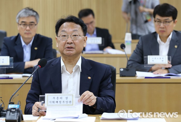 (세종=포커스뉴스) 유일호 경제부총리 겸 기획재정부장관이 5일 오전 서울-세종 영상회의로 열린 경제관계장관회의에 참석해 회의를 주재하고 있다.