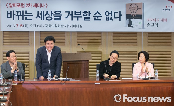 (서울=포커스뉴스) 5일 오전 서울 여의도 국회 의원회관에서 열린 국가미래전략포럼(일명 알파포럼) 2차 세미나에 참석한 원유철(왼쪽 두번째) 새누리당 의원이 인사하고 있다.