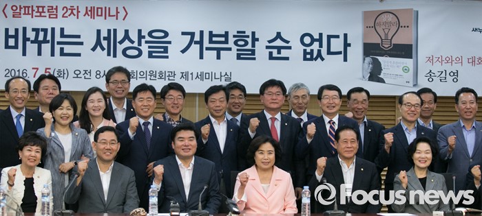 | △ 기념촬영하는 알파포럼 소속 與 의원들 |