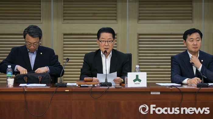 (서울=포커스뉴스) 5일 오전 서울 여의도 국회 의원회관에서 열린 국민의당 의원총회에 참석한 박지원(가운데) 비상대책위원장이 모두발언을 하고 있다.