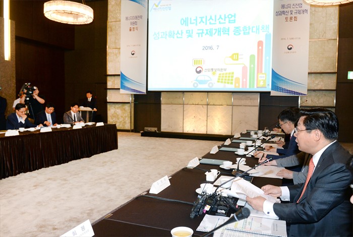 (서울=포커스뉴스) 주형환 산업통상자원부 장관이 5일 오전 서울 소공동 플라자호텔 다이아몬드홀에서열린 에너지신산업 종합대책 토론회를 주재하고 있다. 이날 토론회에는 손양훈 인천대 교수, 강기석 서울대 교수, 김성우 삼정KPMG 본부장, 이해석 고려대 교수, 송재호 국제가스연맹 부회장 등 에너지미래전략위원과 권문식 현대자동차 부회장, 김태극 LS CNS 부사장, 윤경림 KT 부사장, 정도양 PNE시스템즈 대표, 곽창호 포스코경영연구원장, 표인수 법무법인 태평양 변호사 등 관계자 20여명이 참석했다. <사진제공=산업통상자원부>