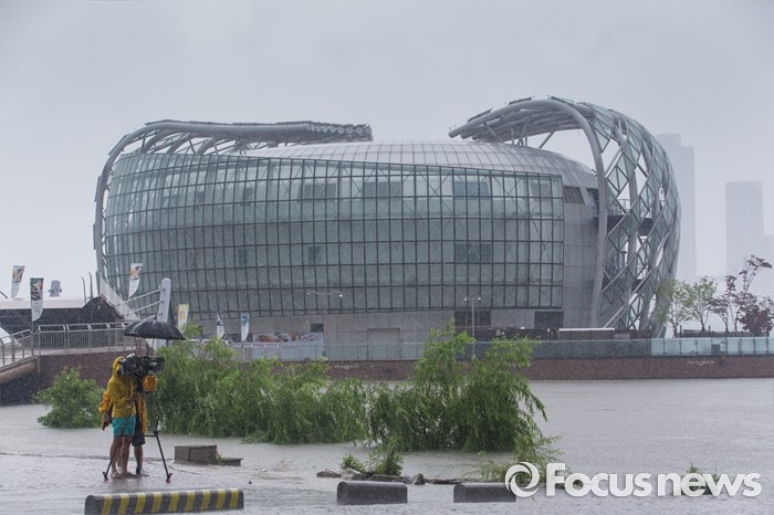 (서울=포커스뉴스) 장마전선이 북상하면서 전국 곳곳에 호우특보가 발표 중인 5일 오전 서울 서초구 반포한강시민공원이 물에 잠기고 있다.