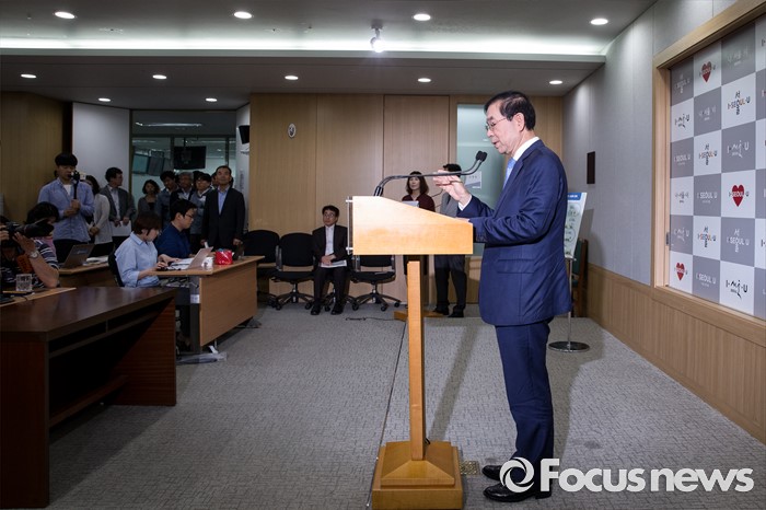 (서울=포커스뉴스) 5일 오전 서울 중구 서울시청 브리핑룸에서 박원순 서울시장이 취임 2년을 맞아 기자회견을 하고 있다.