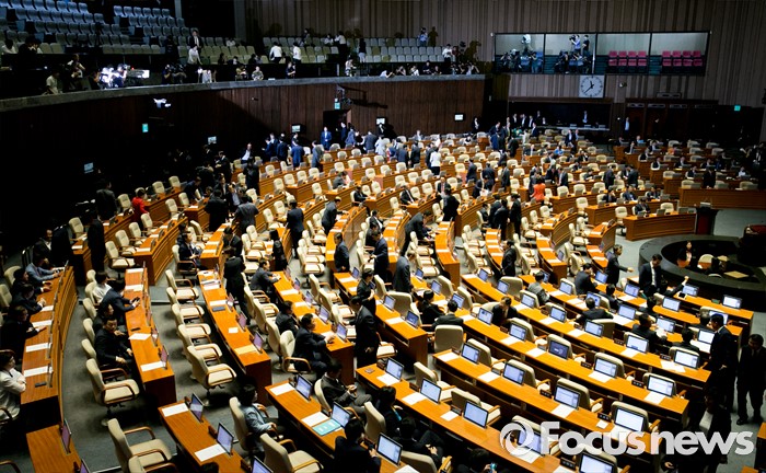(서울=포커스뉴스) 5일 오전 서울 여의도 국회에서 343회 국회(임시회) 7차 본회의, 정치·외교·통일·안보·교육·사회·문화에 관한 질문이 이장우 새누리당 의원 등과 김동철 국민의당 의원의 언쟁으로 정회가 선포되자 의원들이 퇴장하고 있다.