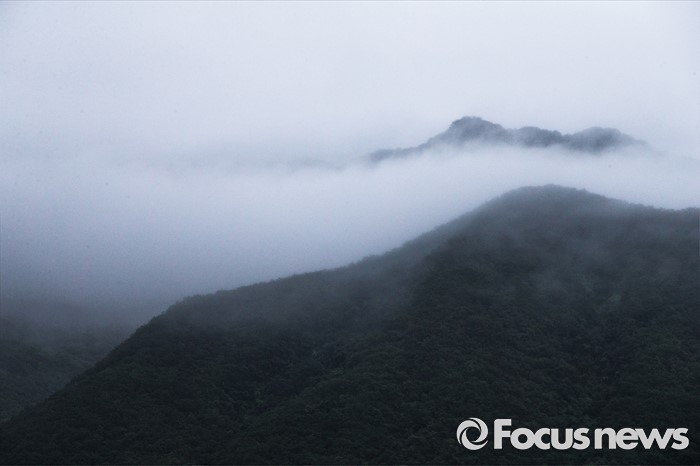 (연천=포커스뉴스) 태풍 네파탁이 북상하고 전국 곳곳에 호우주의보와 경보가 내린 5일 오전 경기도 연천군 상리 인근의 산 허리에 비를 동반한 안개가 짙게 깔려 있다.