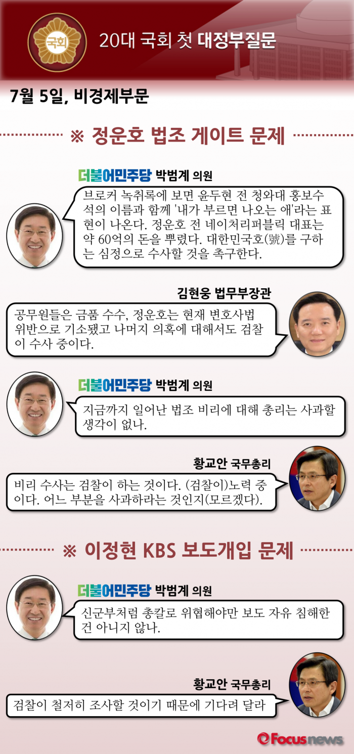 (서울=포커스뉴스) 20대 국회 첫 대정부 질문 이튿날 일정이 5일 오전 10시 국회에서 시작됐다. 4일에는 경제부문을 다뤘고, 5일은 비경제부문을 다룬다.