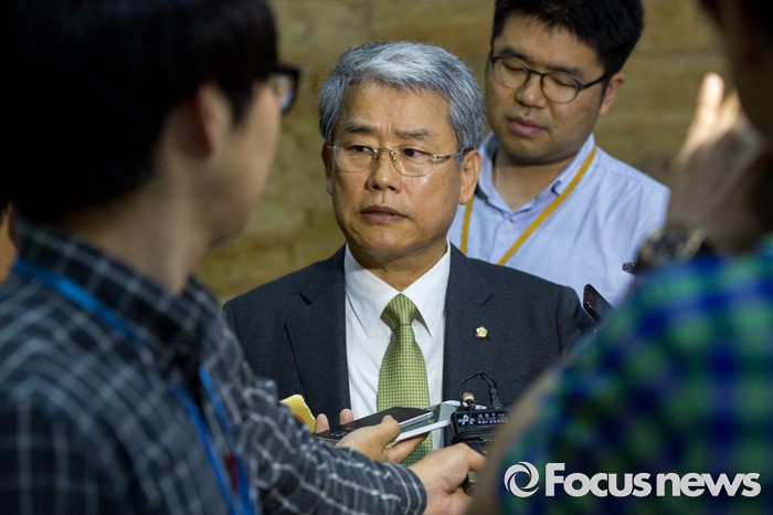 (서울=포커스뉴스) 김동철 국민의당 의원이 5일 오전 서울 여의도 국회에서 열린 '343회 국회(임시회) 7차 본회의 정치, 외교, 통일, 안보, 교육, 사회, 문화에 관한 질문에 참석한 이장우 새누리당 의원과 언쟁을 벌인 뒤 취재진 질문에 답하고 있다.