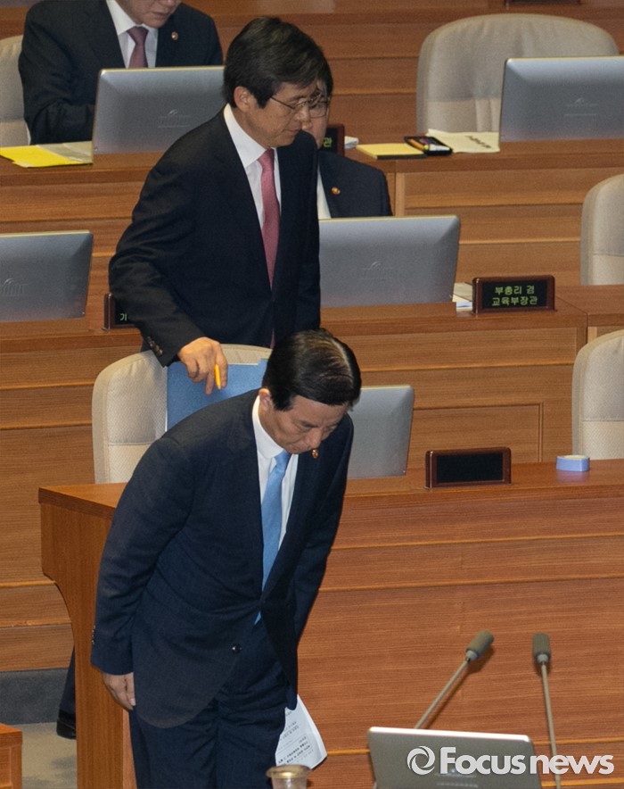 (서울=포커스뉴스) 5일 오전 서울 여의도 국회에서 열린 343회 국회(임시회) 7차 본회의, 정치·외교·통일·안보·교육·사회·문화에 관한 질문에 참석한 한민구 국방부 장관이 윤상현 새누리당 의원의 질문에 답하기 위해 이동하며 인사하고 있다.