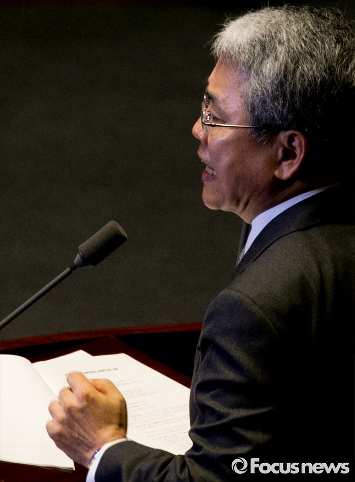 (서울=포커스뉴스) 5일 오전 서울 여의도 국회에서 열린 343회 국회(임시회) 7차 본회의, 정치·외교·통일·안보·교육·사회·문화에 관한 질문에 참석한 김동철 국민의당 의원이 새누리당 의원들과 언쟁을 하고 있다.