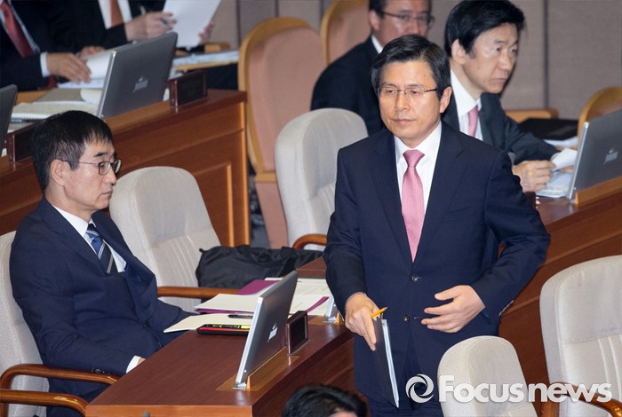 (서울=포커스뉴스) 5일 오전 서울 여의도 국회에서 열린 343회 국회(임시회) 7차 본회의, 정치·외교·통일·안보·교육·사회·문화에 관한 질문에 참석한 황교안 국무총리가 의원들의 질문에 답하기 위해 이동하고 있다.