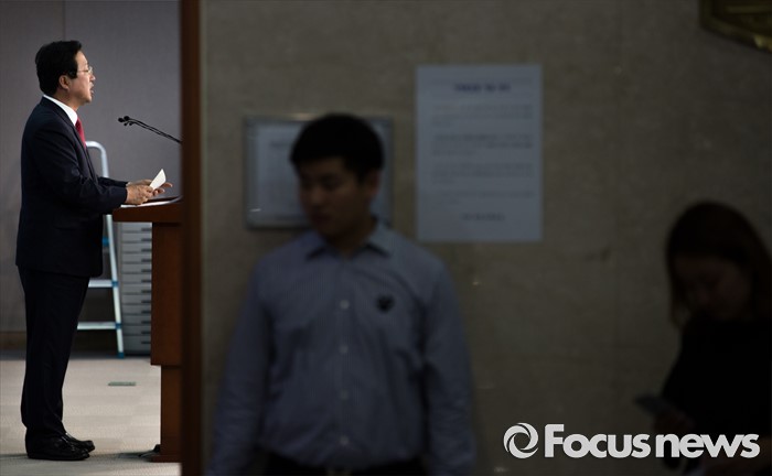 (서울=포커스뉴스) 이장우 새누리당 의원이 5일 오후 서울 여의도 국회에서 김동철 국민의당 의원과 본회의장에서의 언쟁을 벌인 것과 관련한 입장발표를 하고 있다.