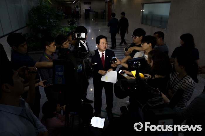 | △ 취재진에 둘러 싸인 이장우 새누리당 의원 |