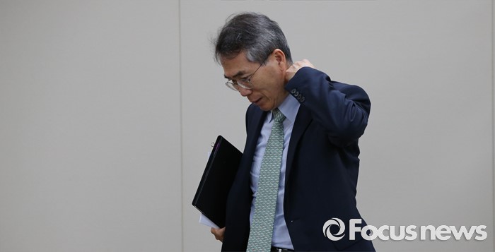 (세종=포커스뉴스) 5일 세종시 정부세종청사 고용노동부 최저임금위원회에서 열린 제9차 전원회에서 박준성 위원장이 회의장에 입장하고 있다.
