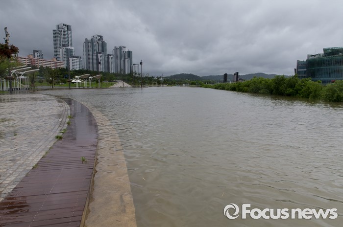 5일 서울에 올해 첫 호우경보가 발효된 가운데 폭우가 쏟아지면서 도심 곳곳이 침수되는 등 피해가 속출하고 있다. 양재천의 범람·중랑천 산책로의 침수 등으로 이날 오전부터 동부간선도로, 잠수교, 청계천 등이 전면 통제돼 배수 작업이 진행 중이다.