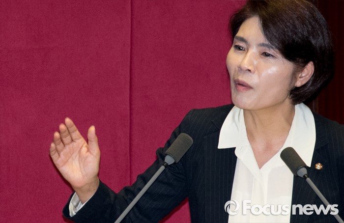 (서울=포커스뉴스) 5일 오후 서울 여의도 국회에서 열린 343회 국회(임시회) 7차 본회의, 정치·외교·통일·안보·교육·사회·문화에 관한 질문에 참석한 한정애 더불어민주당 의원이 기업 하청업체 근로자들과 관련 황교안 국무총리에게 질문하고 있다.