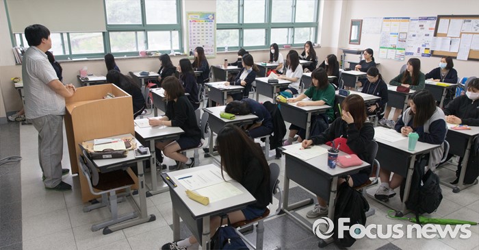 (서울=포커스뉴스) 7월 전국연합학력평가가 실시된 6일 오전 서울 은평구 신도고등학교에서 3학년 학생들이 1교시 국어영역 시험을 치르고 있다.