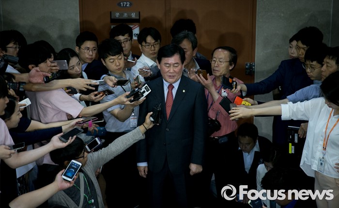(서울=포커스뉴스) 최경환 새누리당 의원이 6일 오전 서울 여의도 국회 정론관에서 8·9 전당대회 불출마 기자회견을 마친 뒤 취재진 질문에 답하고 있다.
