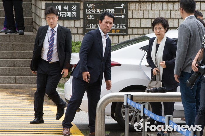 (서울=포커스뉴스) 롯데면세점 입점 로비 혐의를 받고 있는 신영자(오른쪽) 롯데장학재단 이사장이 영장실질심사를 받기 위해 6일 오전 서울 서초구 서울중앙지법으로 들어서고 있다.